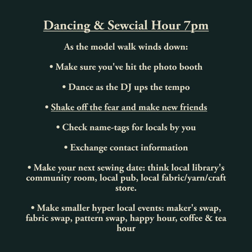 We have drinks, we have GF, Vegan, and regular-schmegular snacks. We have a DJ. You try on clothes in your size range, talk to folks next to you, bond over shopping together, and find new sew squad folks.